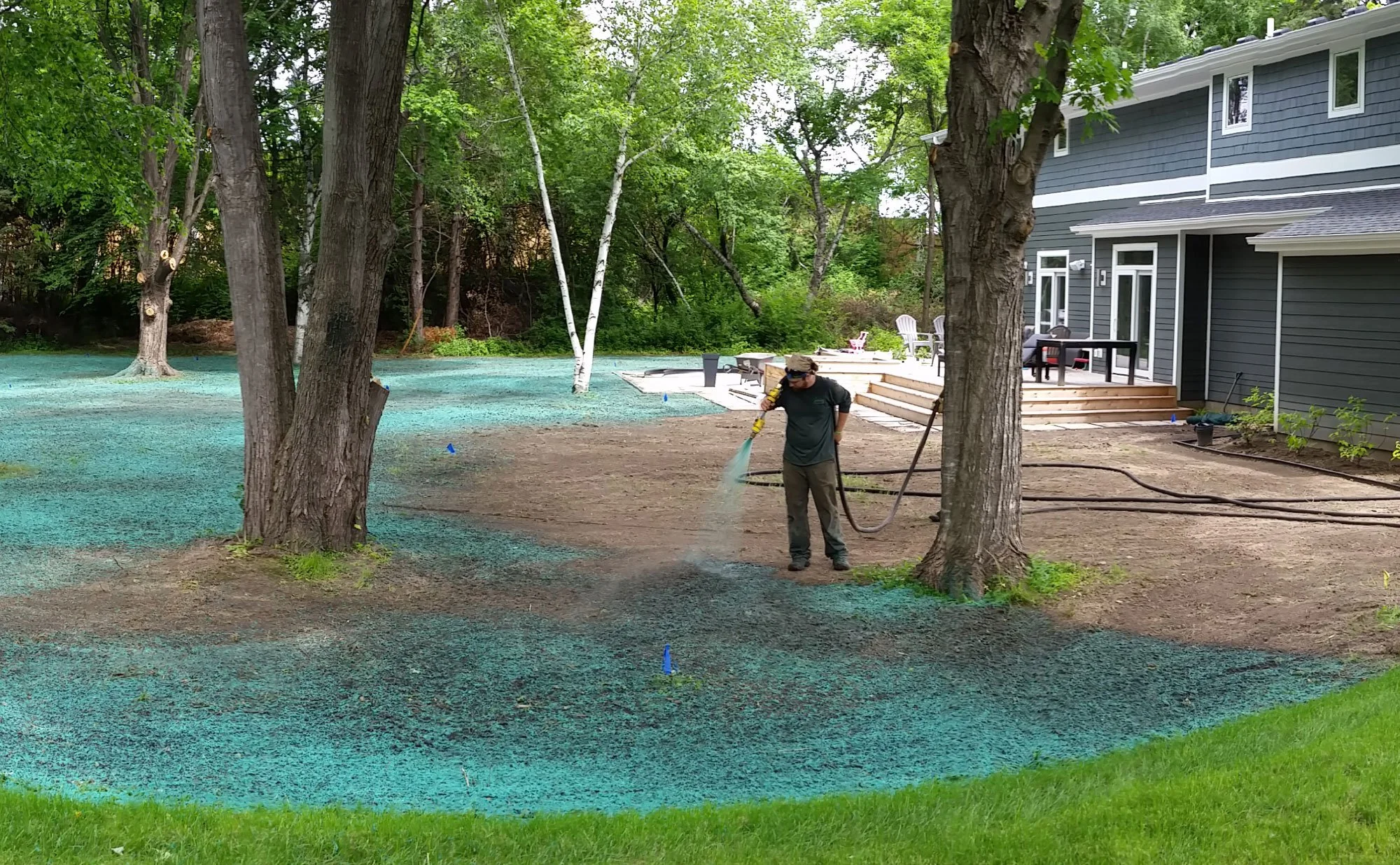 We mix grass seed, high-grade mulch, fertilizer, tackifier (a natural glue), and water into a thick slurry. This mix holds moisture, protects the seed, and feeds your new lawn from day one.Even Spray Application